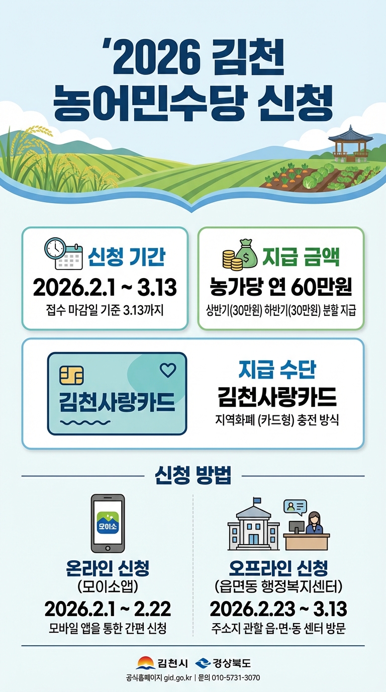 2026년 김천시 농어민수당 안내