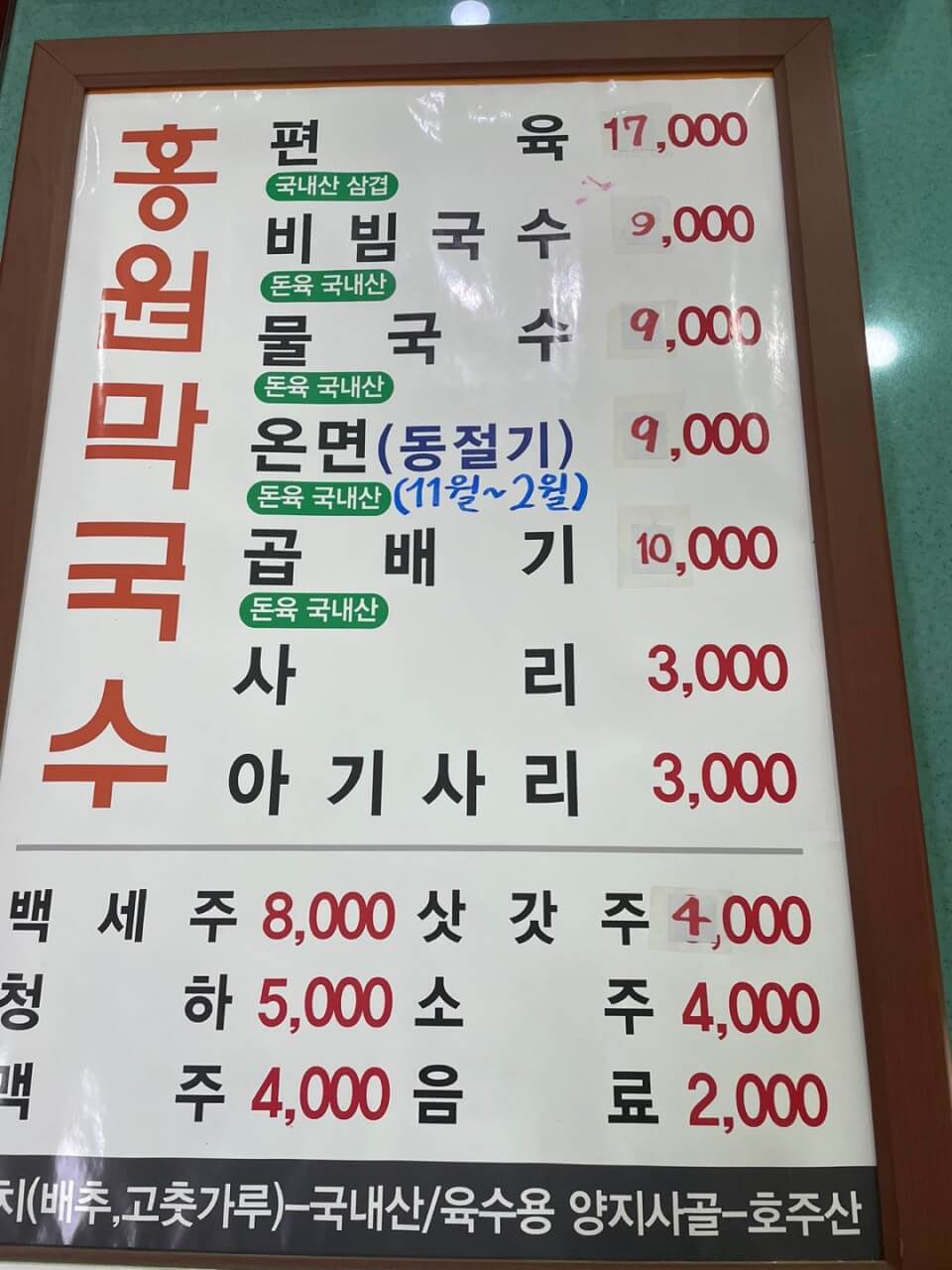 생방송오늘저녁과 생생정보통에 나왔던 홍원막국수는 2023년도 한국소비자산업평가 외식업에서 경기도 여주시 국수 부문 우수상을 받은 곳입니다. 메뉴로는 편육, 비빔국수, 물국수, 온면 등이 있습니다. 온면은 동절기에만 드실 수 있으니 참고해 주시기 바랍니다.