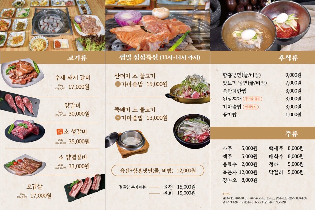 여주아웃렛 근처에 여주본갈비의 메뉴는 한돈수제돼지갈비, 소 생갈비(한정판매), 양갈비, 소양념갈비, 명품오겹살, 뚝배기소불고기, 산더미불고기, 냉면등이 있습니다.