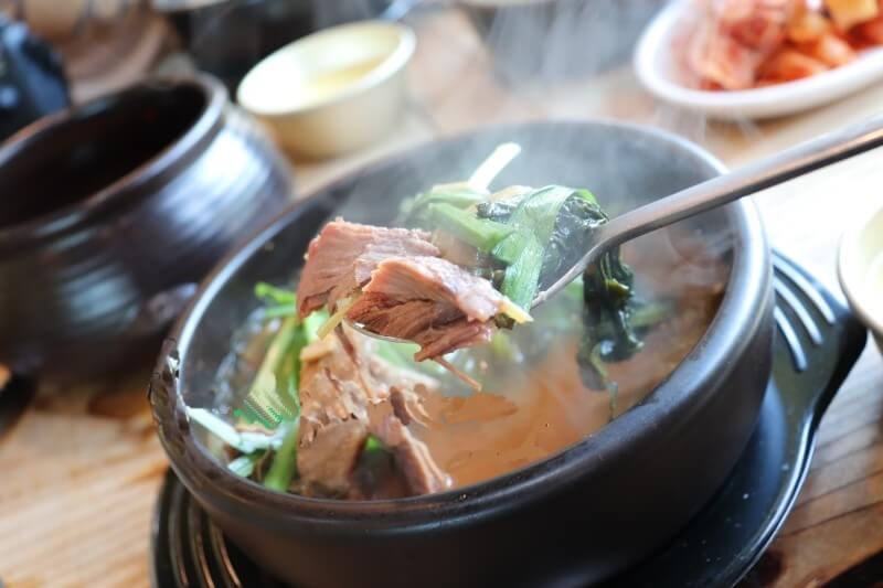 기본찬은 섞박지와 고사리이며 남한강을 마주한 연양지구공원 근처에 위치하여 있기 때문에 식사 후 소화시킬 겸 잠깐의 산책으로 걸어보는 것도 좋을 것 같습니다. 고사리를 넣어서 먹으면 더 맛있다고 하는 사장님의 팁이 있습니다. 이 팁을 무시한 건지 아닌지 모르겠지만 약간의 호불호가 있는 육일한장터국밥집입니다.