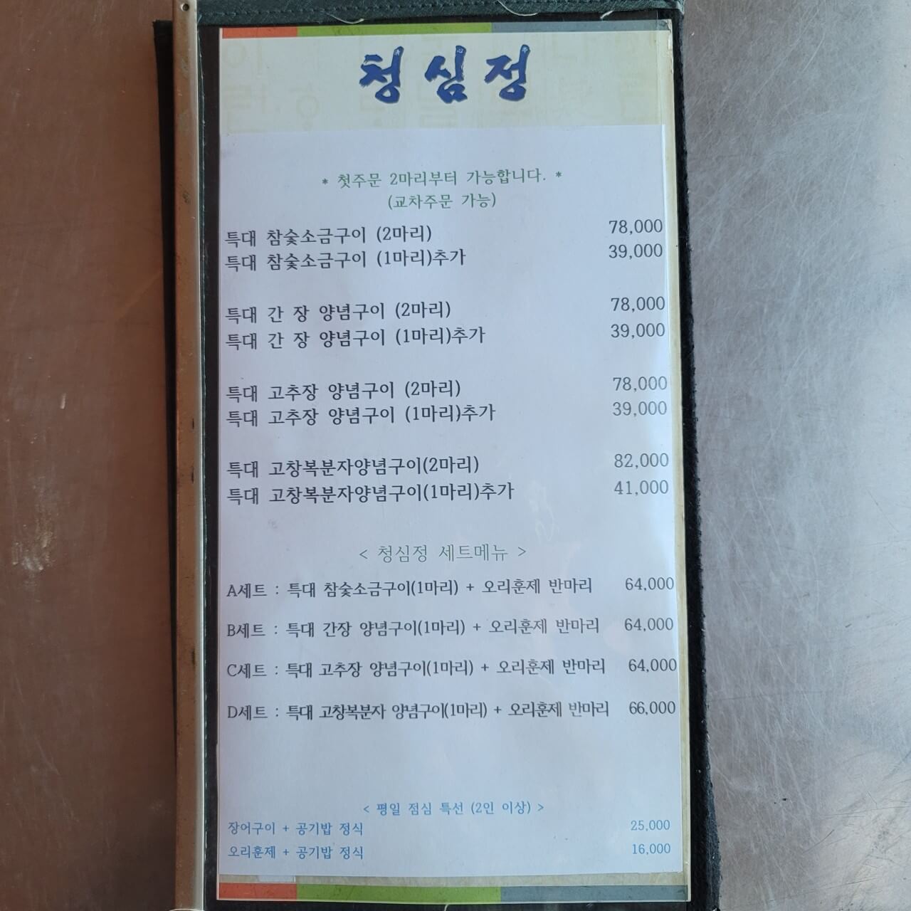 경기으뜸맛집으로 2015년도에 선정되었던 청심정은 장어구이 전문점입니다. 하지만 메뉴는 오리훈제도 있고 한방오리 백숙도 있으니 입맛에 따라 골라서 드시면 될 것 같습니다.