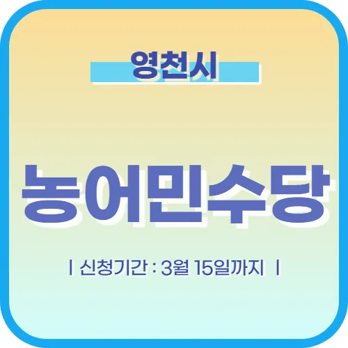 영천시 관계자는 “자격조건에 해당하는 농업인들이 혜택을 못 받는 일이 없도록 많은 관심과 홍보로 기한 내 신청하시기를 당부드린다”라고 말씀하였습니다.