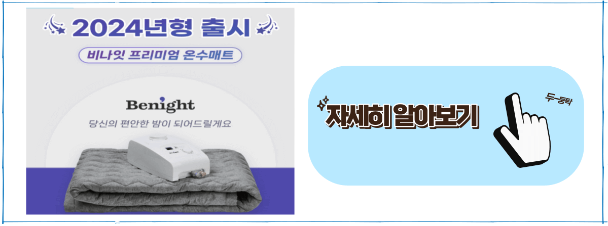 각 제품은 독특한 특징과 성능을 가지고 있어, 여러분의 취향과 필요에 부합하는 제품을 찾는 데 도움이 될 것입니다. 겨울철 추위에 대비하여 따듯하고 안전한 난방을 누리며, 온수매트로 따뜻한 겨울을 만끽해 보세요.