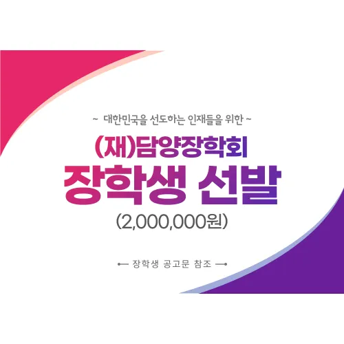 (재)담양장학회는 항상 지역 발전을 위해 노력하고 있습니다. 여러분의 지원과 참여를 통해 지역사회와 국가에 기여하는 인재로 성장할 수 있도록 돕겠습니다. 지원 문의 및 신청은 군 홈페이지를 통해 확인하실 수 있으니, 많은 관심과 지원 부탁드립니다.